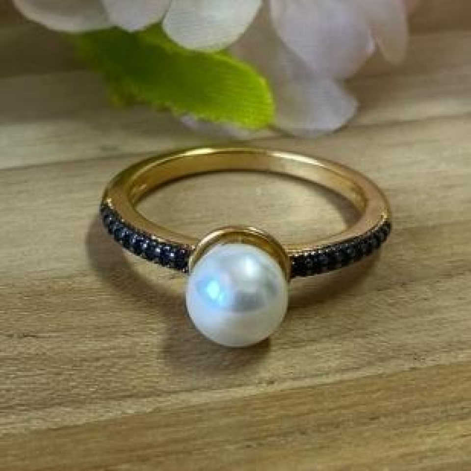 Anel Flor Zircônias Perola...