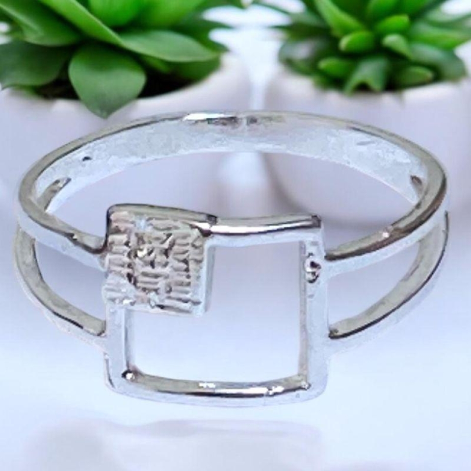Anel Quadrado Vazado c/ Quadradinho Trabal...