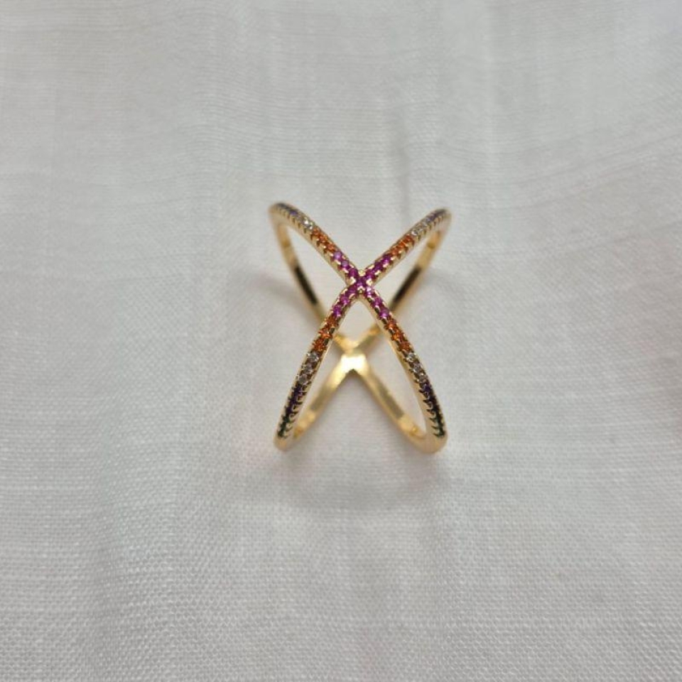 Anel Transpassado Duplo Cravejado...