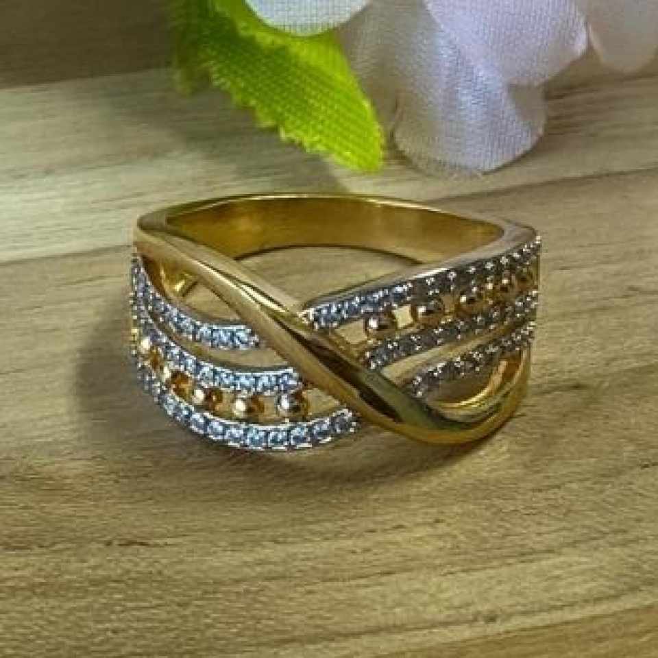 Anel Laço em "X" Reto c/ Zirconias e Liso ...