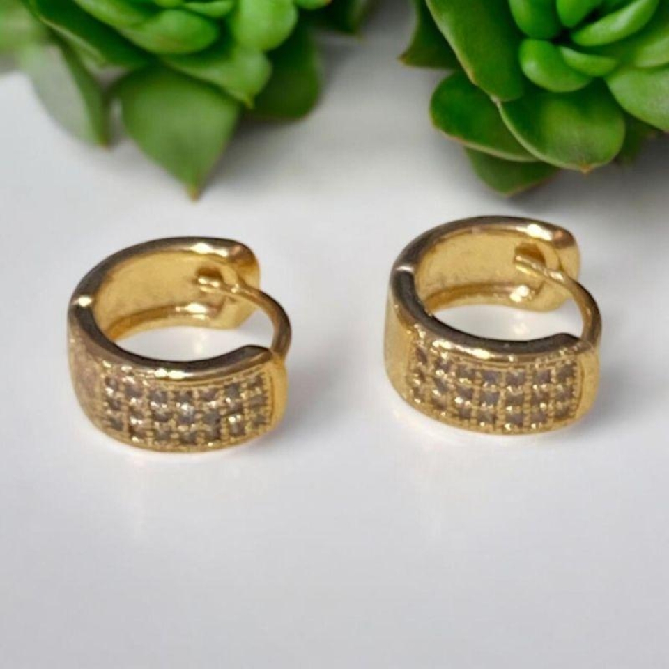Brinco Argola Pedra Quadrada Cristal...