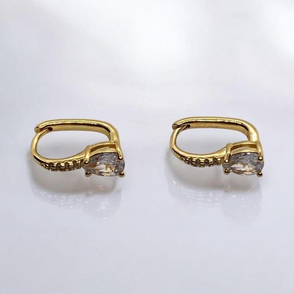Brinco Argola Pedra Quadrada Cristal...