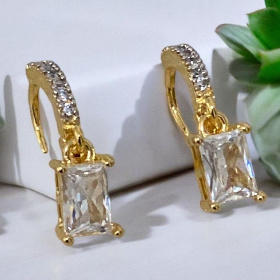 Brinco Argola Pedra Quadrada Cristal...
