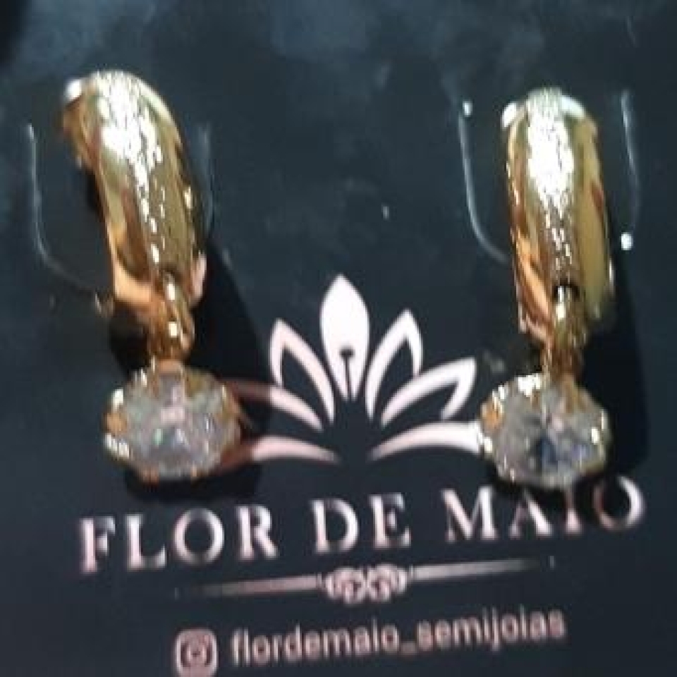 Brinco Argola Pedra Quadrada Cristal...