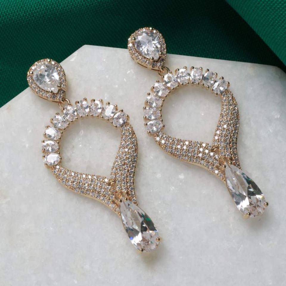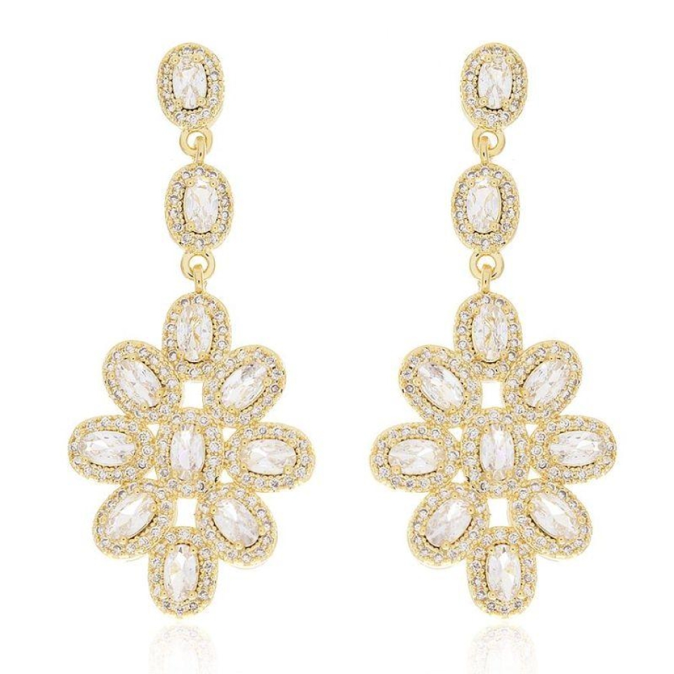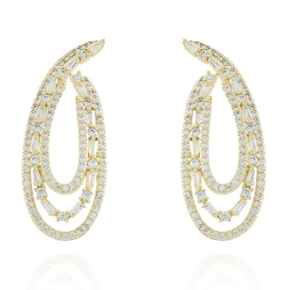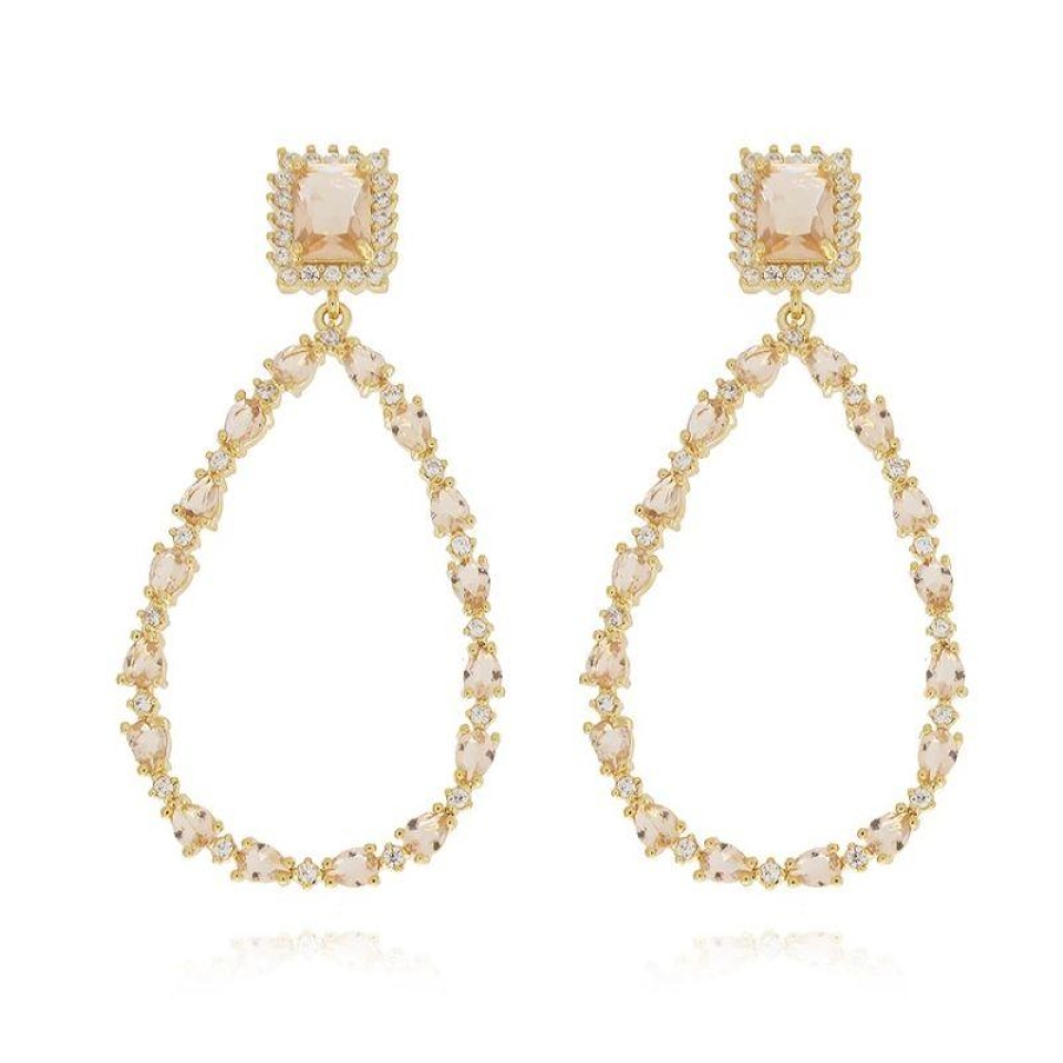 Brinco 5 Pedras Ovais + Pedra Áqua em Gota...