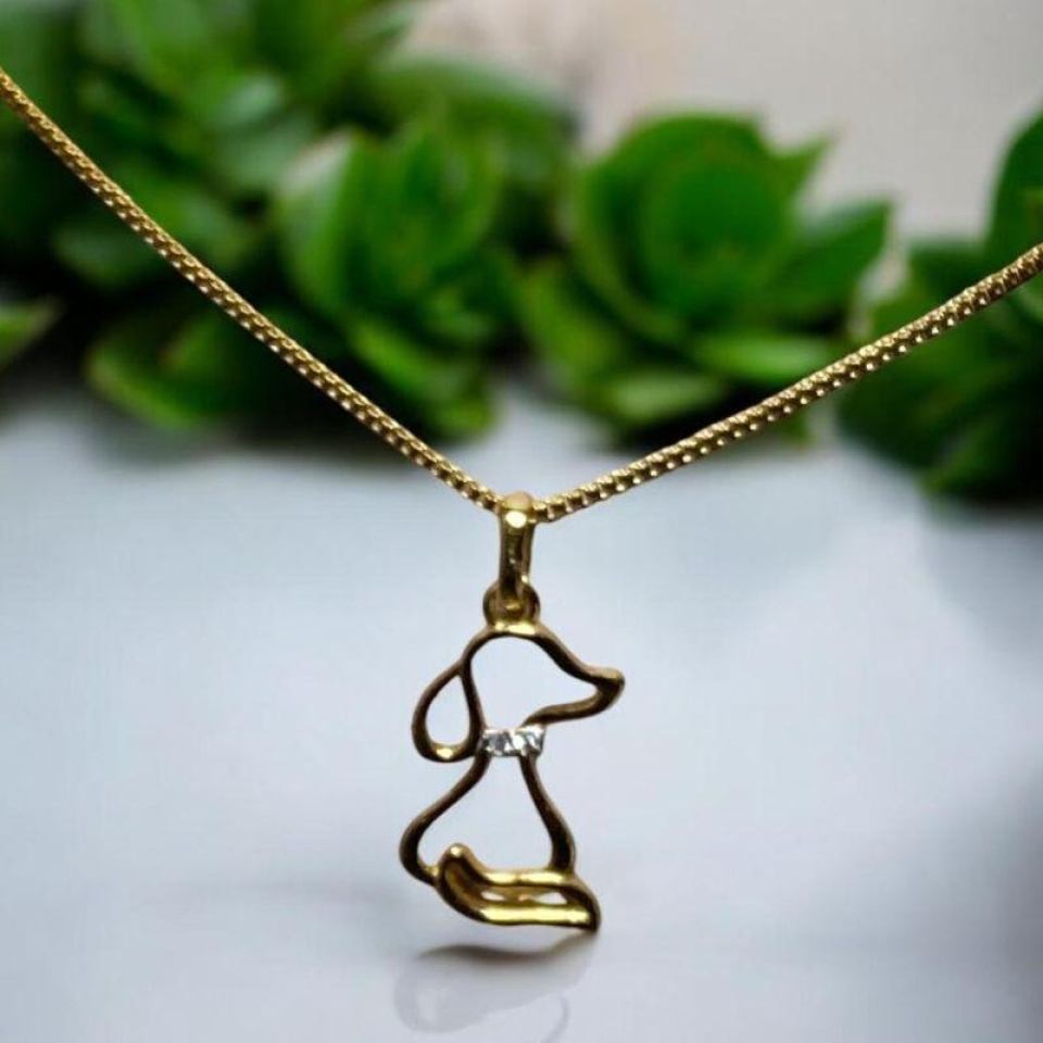 Corrente Pingente Gatinha Coração Rosa...