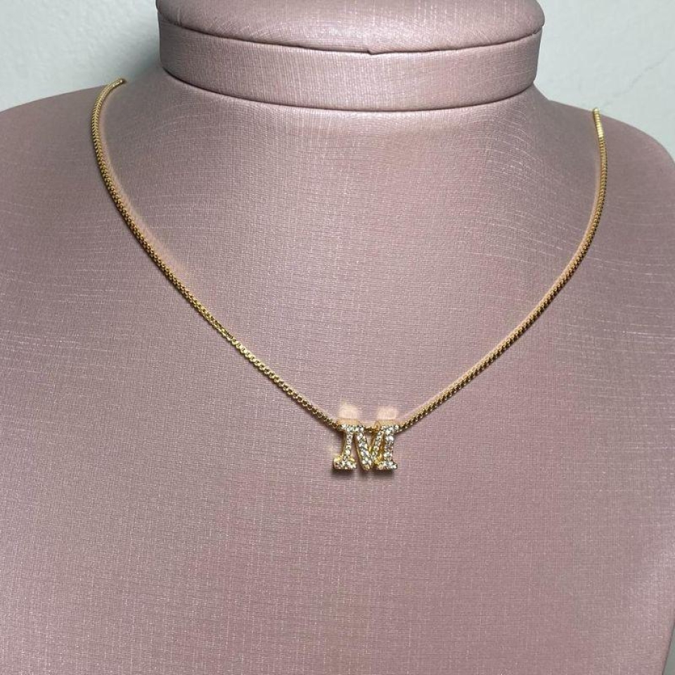 Corrente Pingente Brilhante Letra "N" Prat...