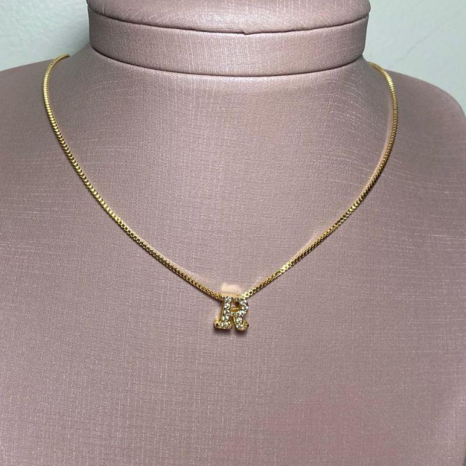 Corrente Pingente Brilhante Letra "N" Prat...
