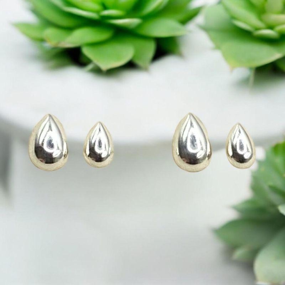 Brincos Prateados Gota em Duplas...