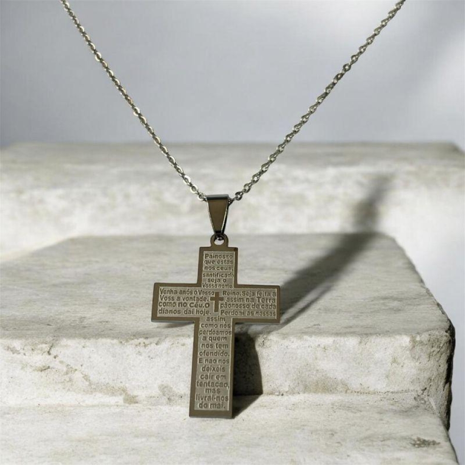 Corrente c/ Medalha Pai Nosso 45cm Prata...